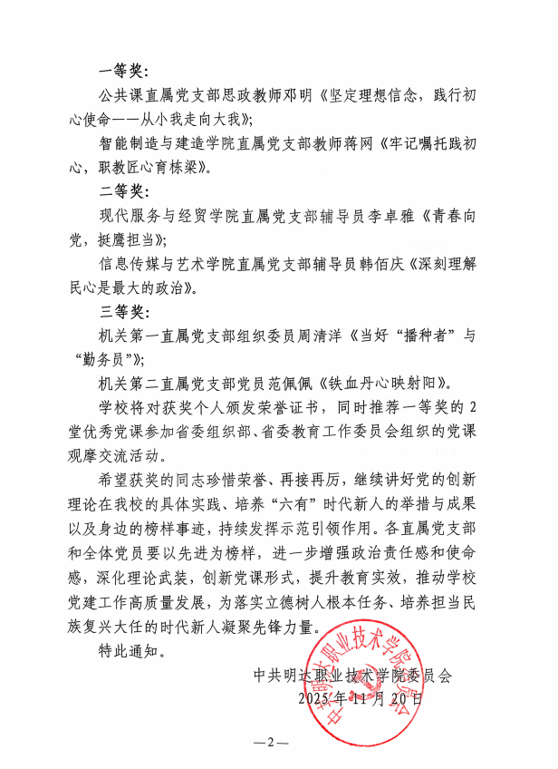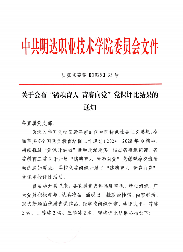 关于公布“铸魂育人 青春向党”党课评比结果的通知