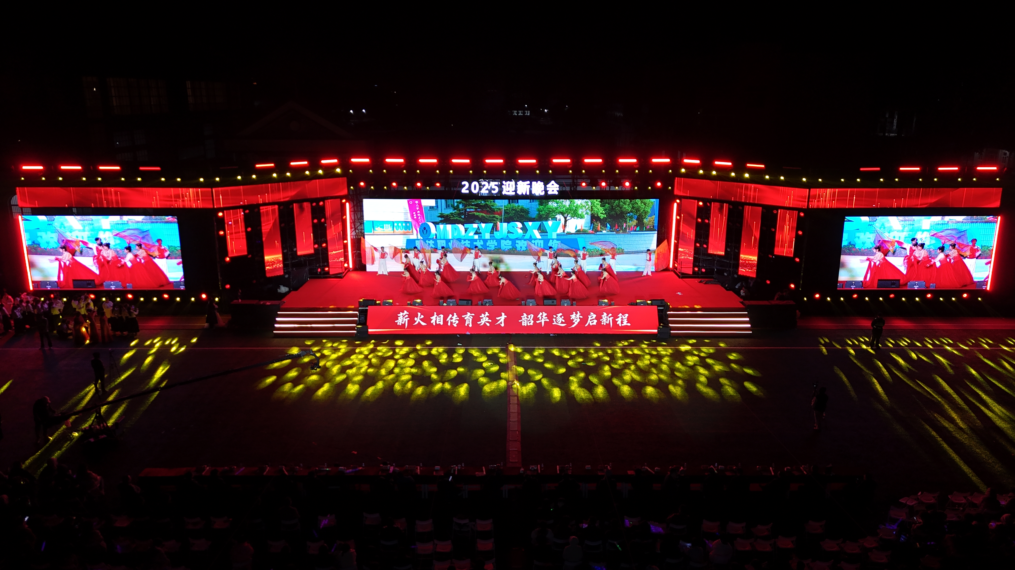 10月22日晚,明达职业技术学院“薪火相传育英才 韶华逐梦启新程”2025年迎新晚会在学校体育场隆重举行。射阳县教育局党委书记、局长周正林,海通镇党委副书记、镇长张德生,学校执行董事张建、校长马宏伟、党委书记刘必千、副校长周凯猛、校长助理、教务处处长徐宏桂以及特邀嘉宾与全体师生共同出席了本次青春盛宴。