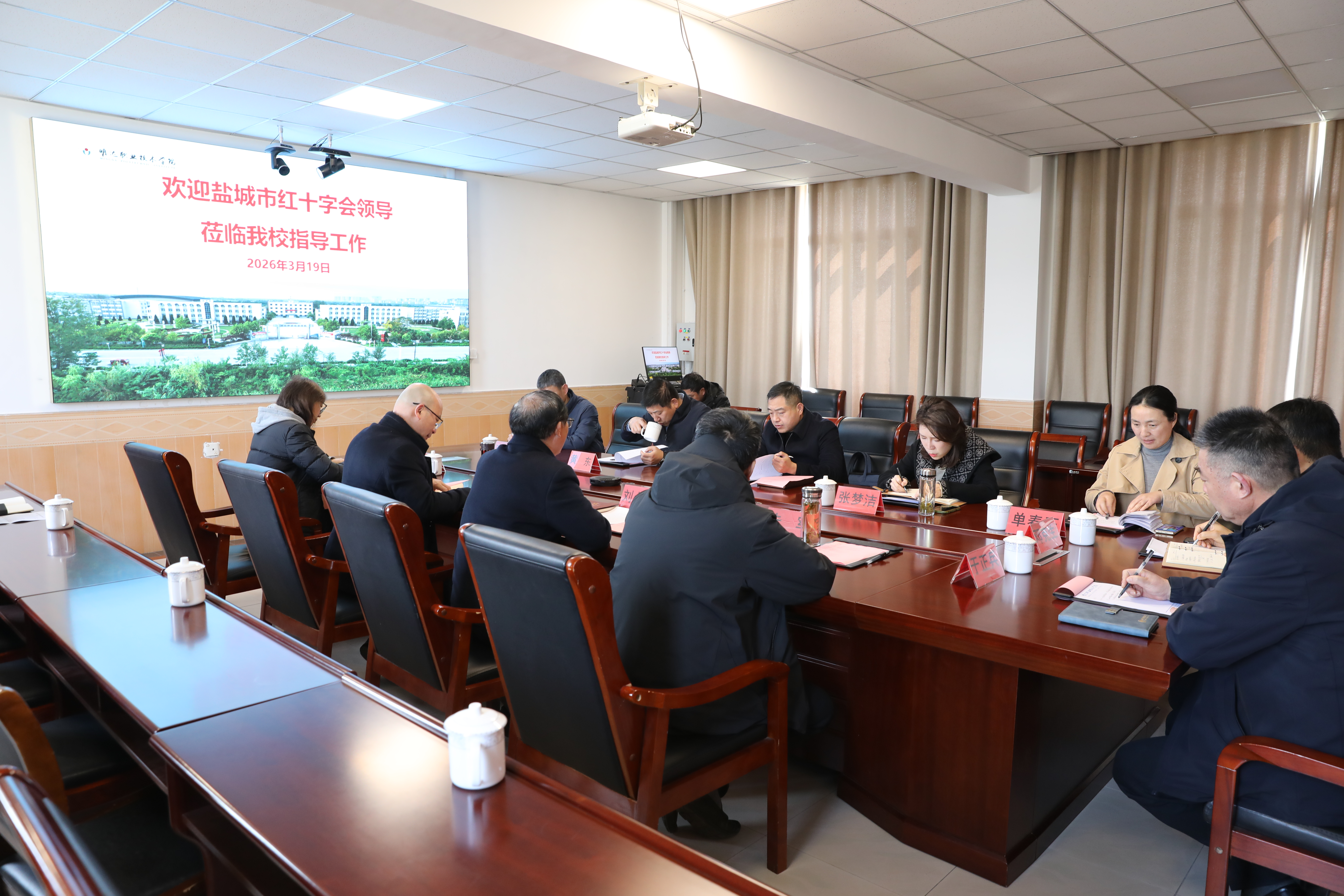 3月19日上午,盐城市红十字会党组成员、副会长张辉一行莅临我校,就学校红十字会组织建设、志愿服务及应急救护培训等工作进行调研指导。射阳县副县长张梦洁,县红十字会常务副会长邓克生、副会长于正兵等陪同调研。我校党委书记刘必千,副校长周凯猛,学生工作处处长朱军,团委书记韩世晨等参加调研座谈会。