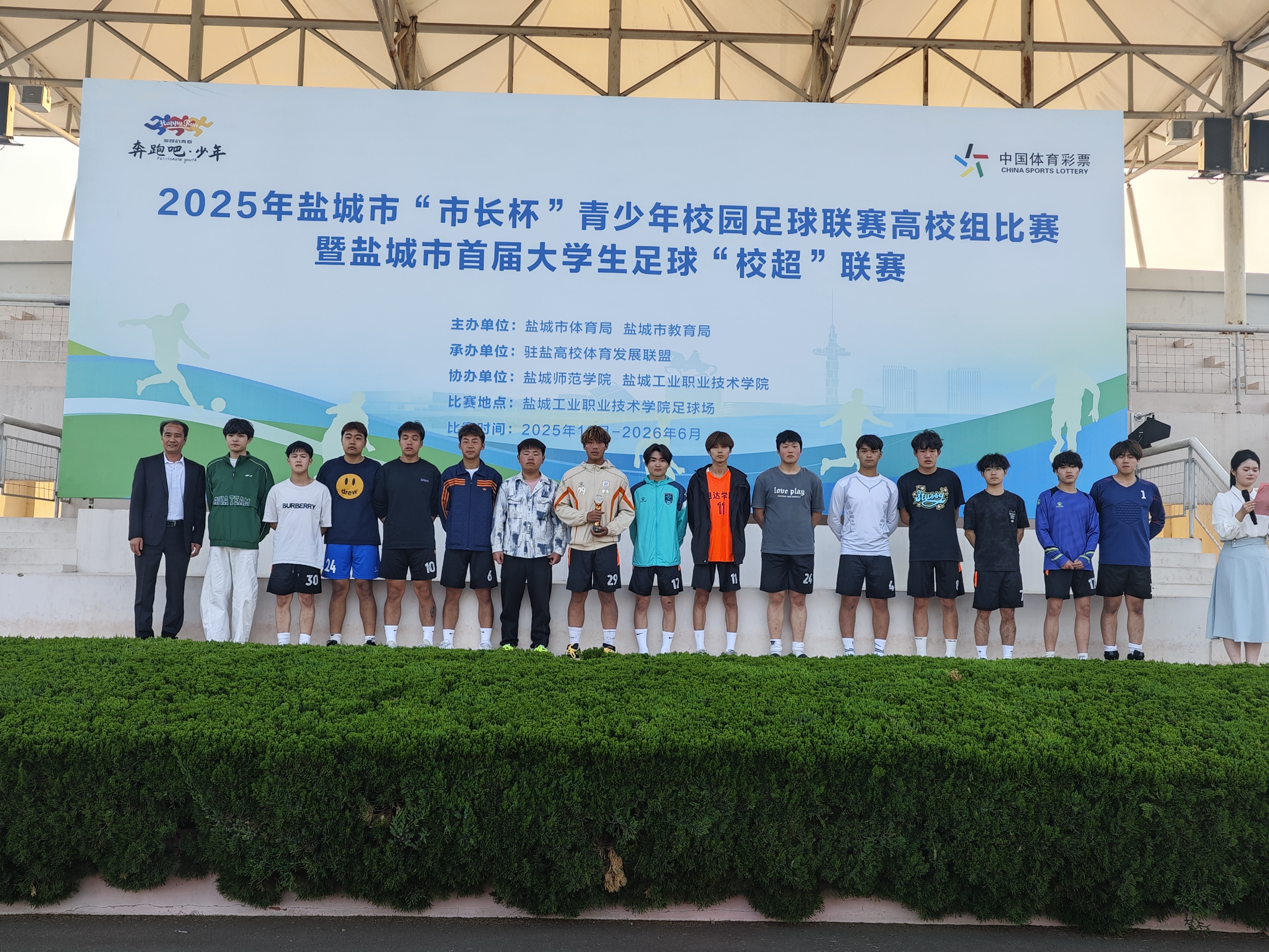 本次赛事是盐城市2025年新创办的高校校园足球赛事,对标“省长杯”江苏省大学生足球联赛标准,旨在补齐高校校园足球联赛体系,推动青少年足球运动普及与提升。接到参赛通知后,学校迅速成立参赛工作小组,依托学生体质提升专项行动搭建的训练平台,高标准完成队员选拔、集训组织等筹备工作。主教练郝晨晨科学制定训练计划,聚焦体能强化、战术配合、实战对抗等核心环节,全方位提升球队竞技能力;领队季卫锋全程做好赛事统筹与后勤保障,为球队安心备战保驾护航。全体队员利用课余时间刻苦训练,将日常体质锻炼与竞技备战深度融合,以饱满热情投入每一场训练与比赛。